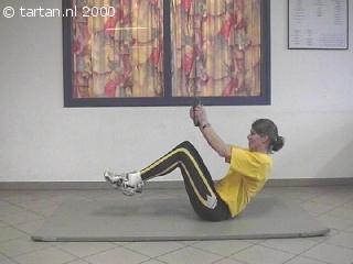 Een solo oefening met de halterschijf. Deze oefeinig zit dicht bij "Belly-Bal" alleen niet zo explosief.