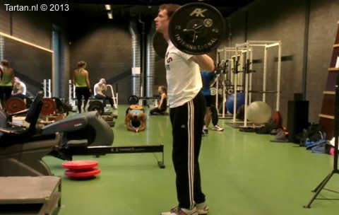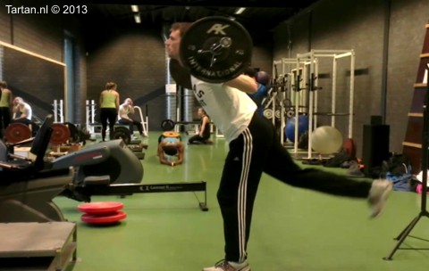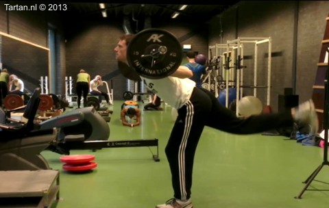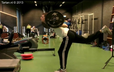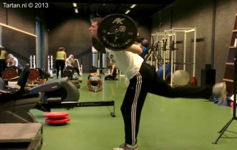 The one leg stand with the barbell this is difficult on its own, tilt the trunk over very slowly with the free leg always inline with the trunk and the hips level, keep the toes pointing downward. With this exercise it is okay to bent the support leg a little.