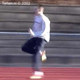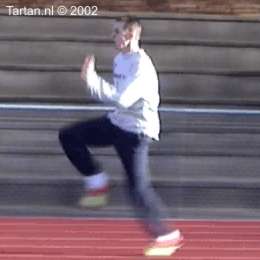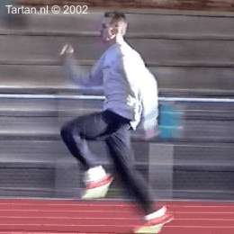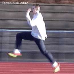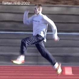 Reactieve loopstijl die perfect past bij een 200/400m loper. Let op het snelle zwaaibeen en de reactieve voetplaatsing. De geweldige stuwing in de steunfase wordt goed vanuit het bovenlichaam ondersteund, en ook de hamstrings worden optimaal gebruikt.