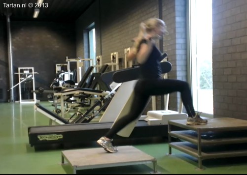 Once you have mastered Step Up Jump In you could consider moving to this exercise. With the lunge-extension added the athlete can keep moving forward, this way the exercise more closely resambles a horizontal take-off, like in hurdling, long-jump or triple-jump. The lunge it self has no purpose. If you are ready you could advance to Step Up Double Scissor to improve your skills.