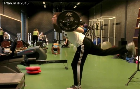 The one leg stand with the barbell this is difficult on its own, tilt the trunk over very slowly with the free leg always inline with the trunk and the hips level, keep the toes pointing downward. With this exercise it is okay to bent the support leg a little.