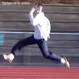 Reactieve loopstijl die perfect past bij een 200/400m loper. Let op het snelle zwaaibeen en de reactieve voetplaatsing. De geweldige stuwing in de steunfase wordt goed vanuit het bovenlichaam ondersteund, en ook de hamstrings worden optimaal gebruikt.