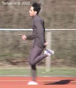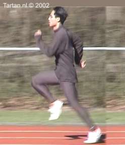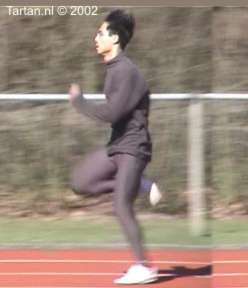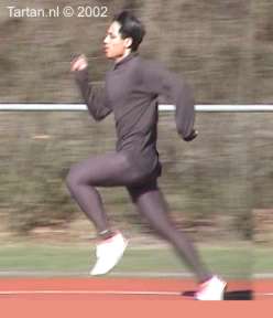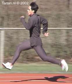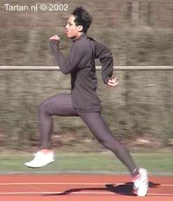 Reactieve loopstijl van een meer explosieve sprinter. Let vooral op de geweldige beweging van de heup, het strekken en de rotatie, en de reactieve voetplaatsing.