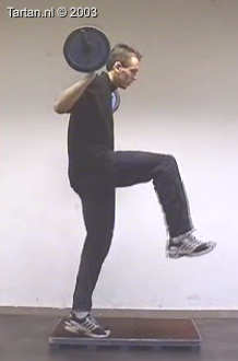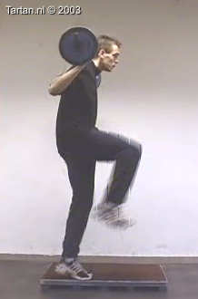 Oefening bestaat uit een snelle been wissel vanaf een kleine verhoging.