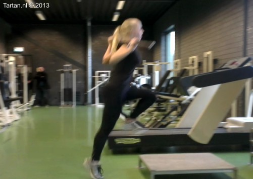 Once you have mastered Step Up Jump In you could consider moving to this exercise. With the lunge-extension added the athlete can keep moving forward, this way the exercise more closely resambles a horizontal take-off, like in hurdling, long-jump or triple-jump. The lunge it self has no purpose. If you are ready you could advance to Step Up Double Scissor to improve your skills.
