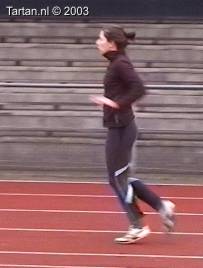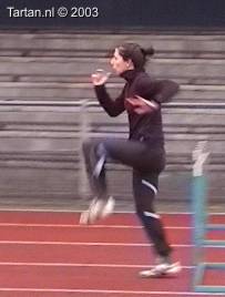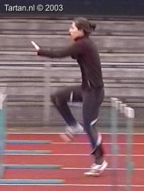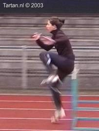 Deze drie-pas is bijzonder goed uitgevoerd. Het opzwaaibeen (OZB); zeer spits opgezwaaid, meteen na de horde naar beneden en landing halve voet acht de horde(!). Het bijtrekbeen (BTB); meteen na de afzet wordt bijtrek beweging ingezet, continue beweging naar voren, mooi hoog gesloten.