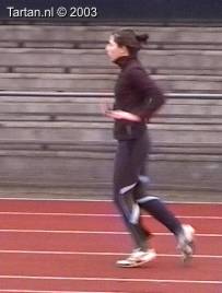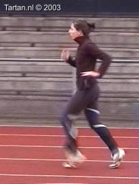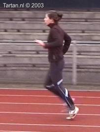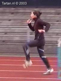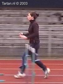 Vlak voor de afzet komt het LZP even achter de voet te liggen, dit gebeurt duidelijk bewust omdat de laatste pas duidelijk groter is als de voorlaatste. Ook de strekking in de afzet (let op de rug) is niet optimaal. Dit is niet wenselijk de twee laatste contacten voor de horde moeten als het waren een stuwende afzet vormen, waarbij de laatste pas kleiner is als de voorlaatste. De strekking van de heup (niet het been) moet volledig zijn.
