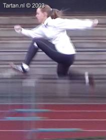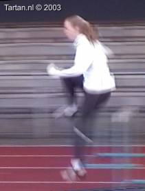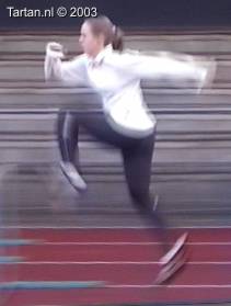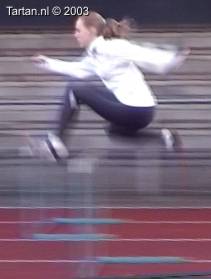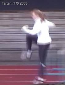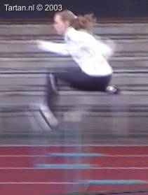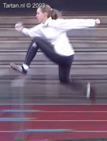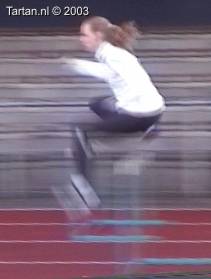 Keurig uitgevoerde 3pas. Goed voet- en rompspanning tussen de hordes. Goede strekking tijdens de afzet. Na de horde is de spanning meteen goed terug. Opzwaaibeen (OZB) en bijtrek been (BTB) zijn goed getimed en zijn goed op elkaar ingespeeld.