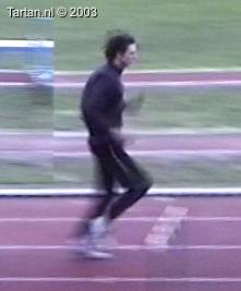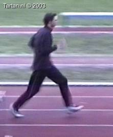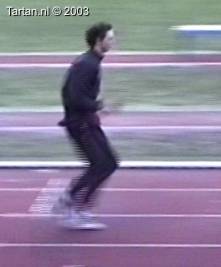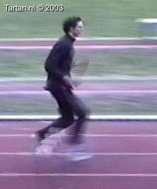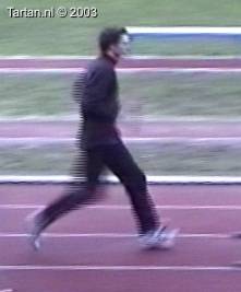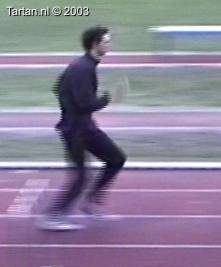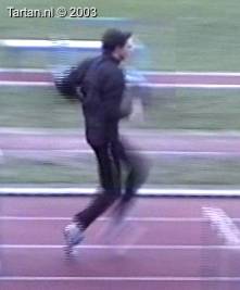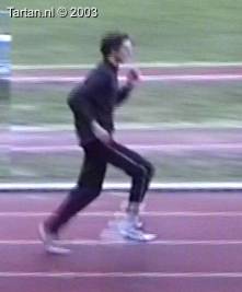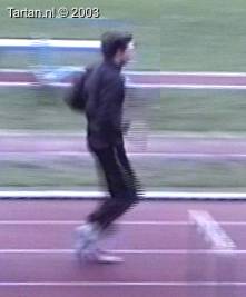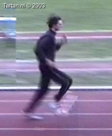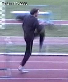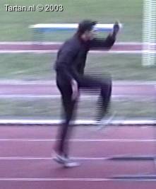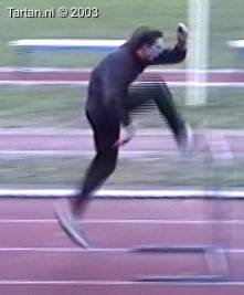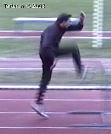 Het voeten werk van deze atleet laat nog veel te wensen over. Muv het eerste steun na de horde gebeurt er aan de grond bijzonder weinig.