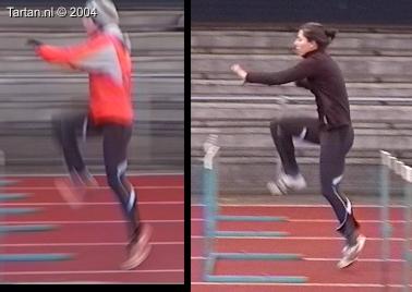 The leadleg tilts the pelvis backwards just after take-off where it should go forward. The backward tilted pelvis prevents the trailleg being pulled through right. After that the athlete fails to reposition the pelvis before landing, leading to a high impact, breaking and poor take-off after the hurdle.